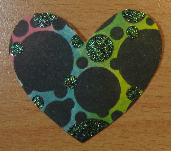 Cut a heart from the stamped bubble background and apply Lemonade Glitter Paste randomly onto some of the small black bubbles.