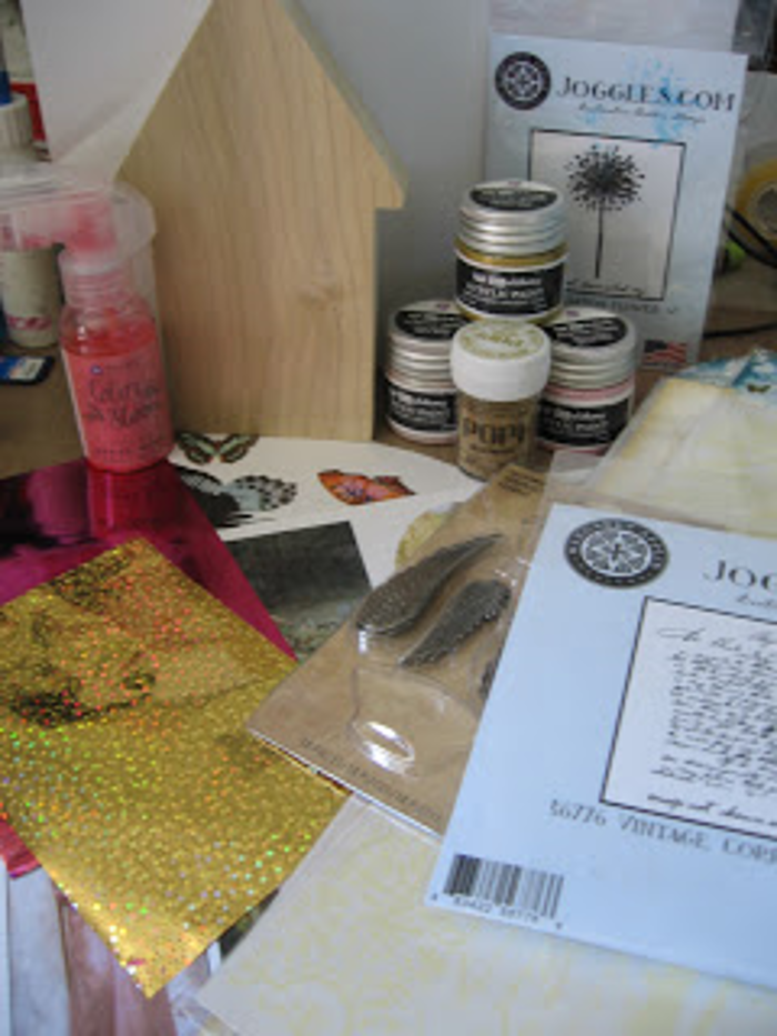 Good morning Joggles friends! It’s Kim here and I am happy to share with you my latest design team project. This time I have altered one of Joggles Wonky Wood Houses, and am also featuring some very cool stamps!