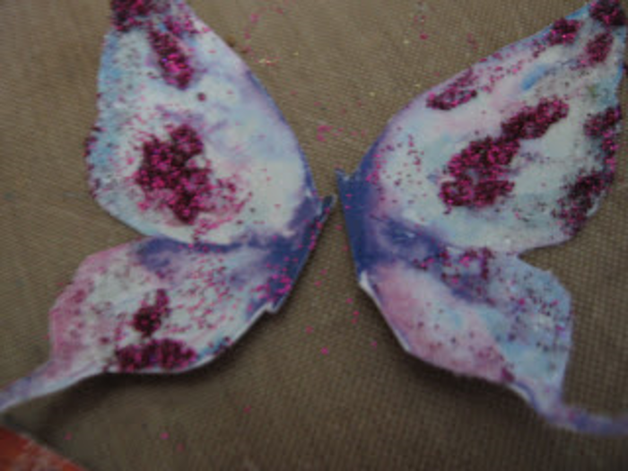 For this butterfly, I used the same glue and pink glitter on the butterfly, also setting it aside to dry completely.