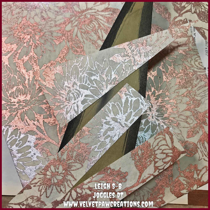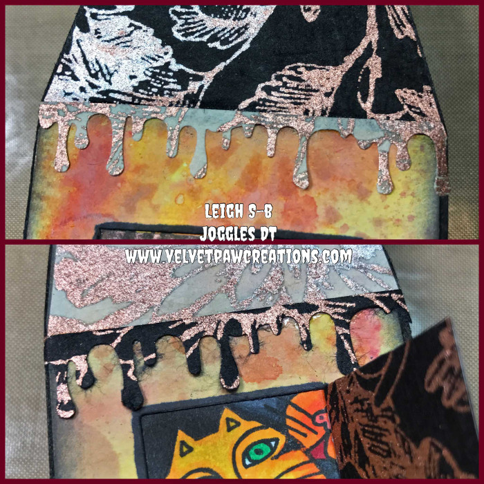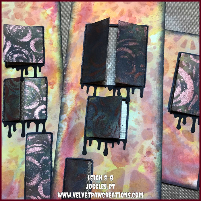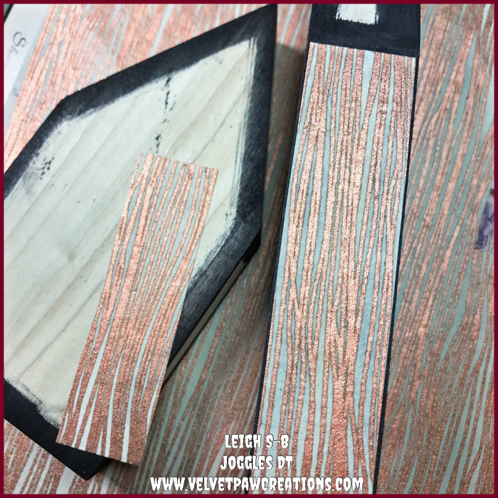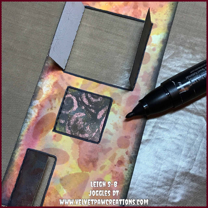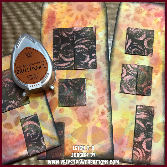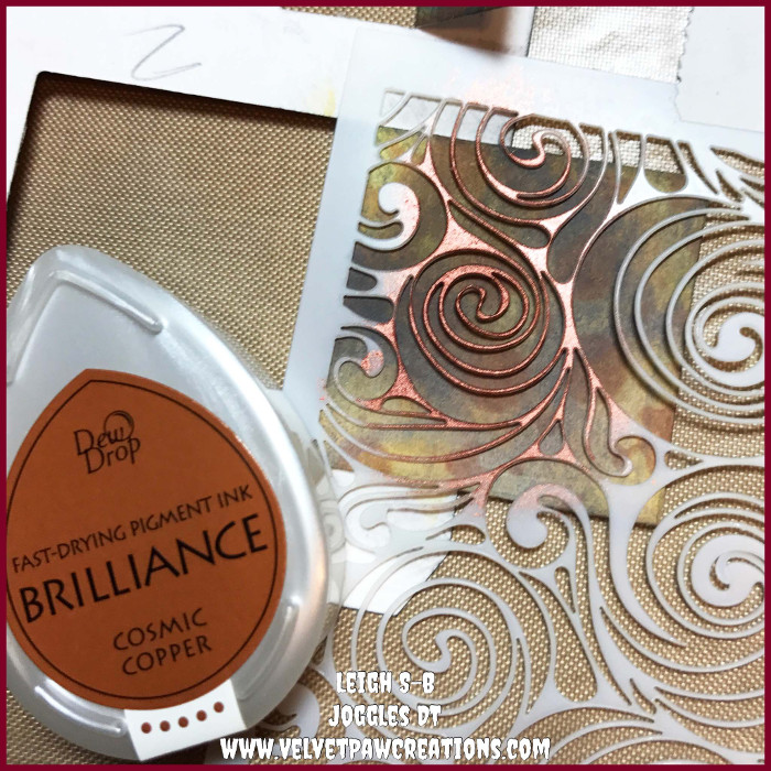I decided to add some subtle pattern to the panels in Distress Tea Dye and chose a gears design…just coz I felt like it. I’m a huge Steampunk fan ;0) You can add whatever pattern you like or just leave it with the yummy Distress Oxide pattern. That’s the beauty of creating; just do whatever speaks to you!