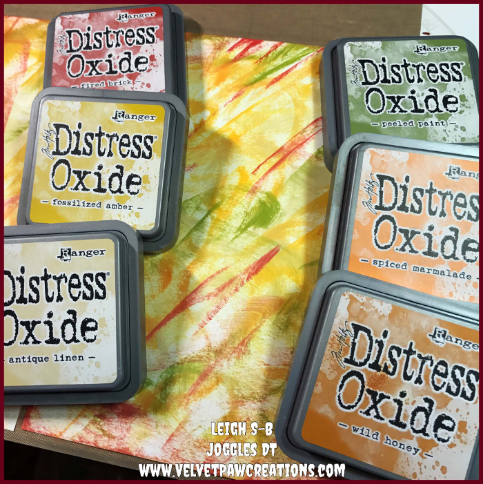 Tim Holtz Distress Oxide Ink Pads: Fired Brick; Fossilized Amber; Antique Linen; Peeled Paint; Spiced Marmalade; Wild Honey;