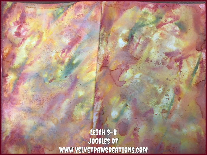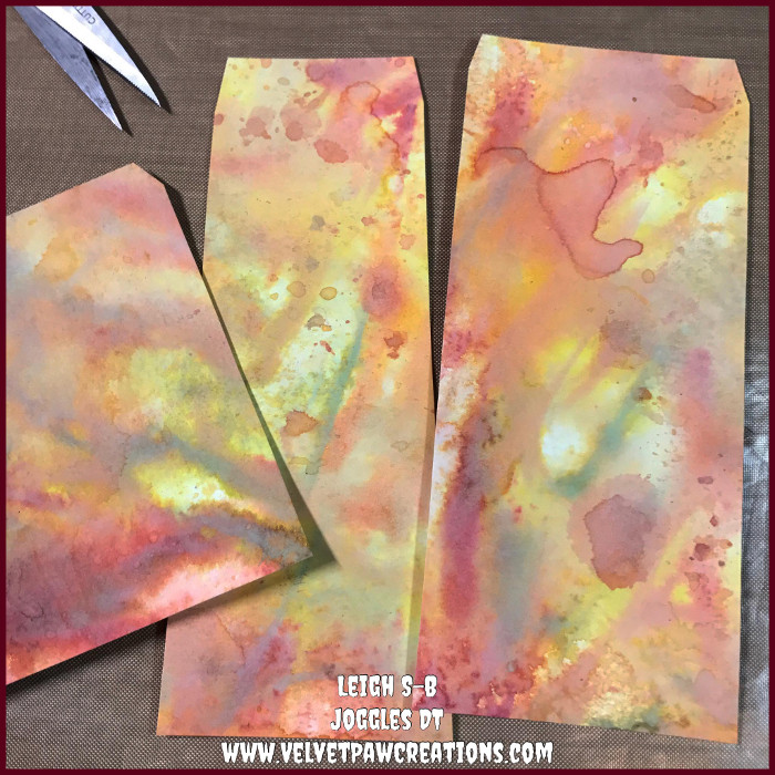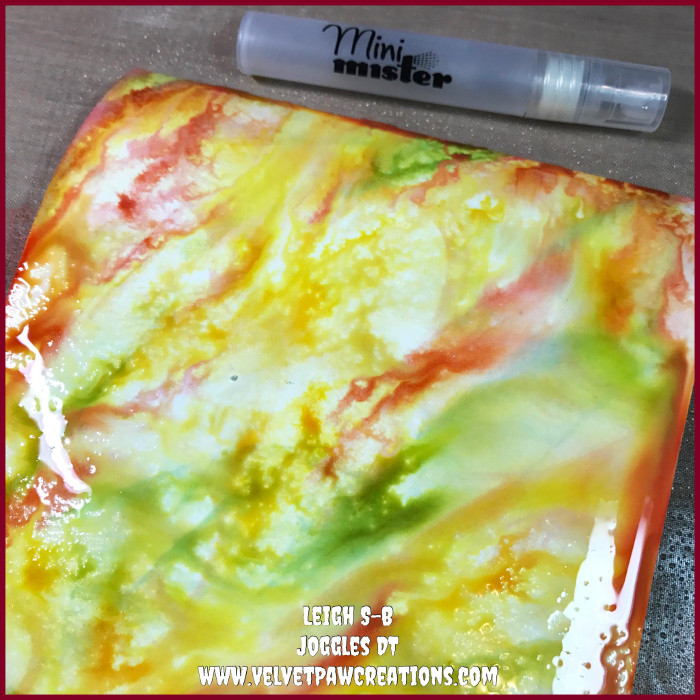 Generously spritz the inked cardstock with water and let it bleed and run and do it’s thing and then dry the cardstock with a heat tool.
