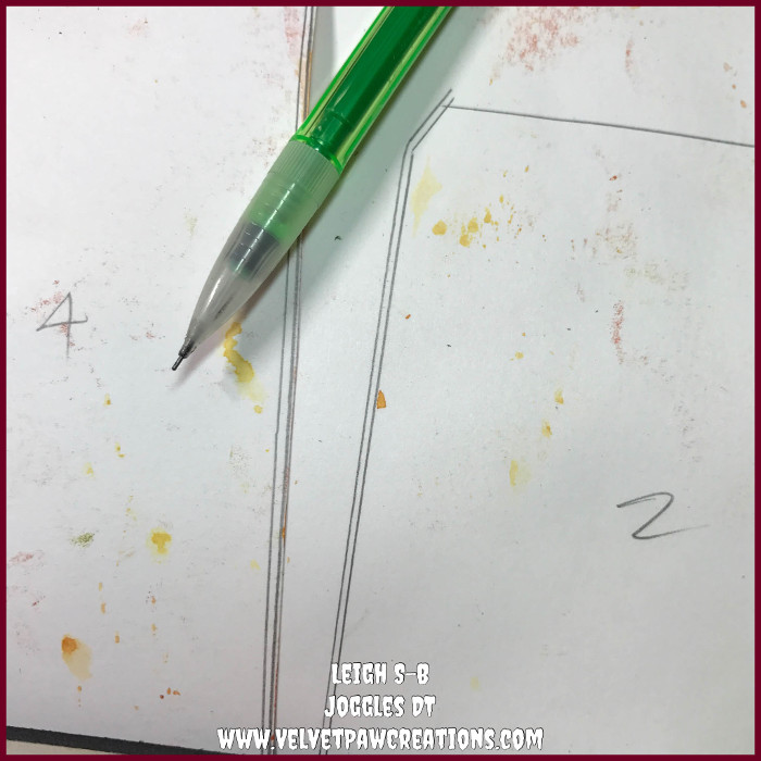 Pencil in “cut lines” about 1/16th of an inch from the original lines to ensure the panels don’t cover the entire front of each house and lets the nice black Distress Stained edges show.