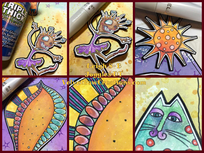 Apply Triple Thick gloss (Judikins or Inkssentials Glossy Accents) to the girl’s and the cat’s eyes with a toothpick because the areas are so tiny. Then add magical shimmer to parts of each image with clear Wink of Stella. You can use a Glitter glue if you’d prefer.