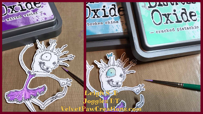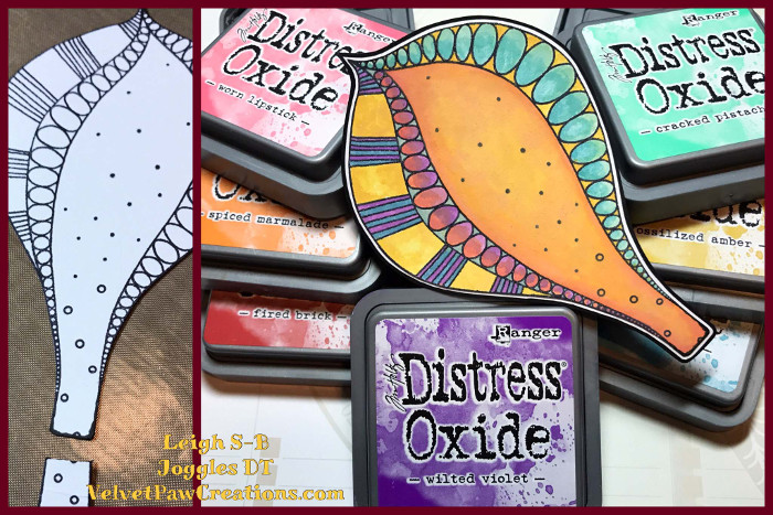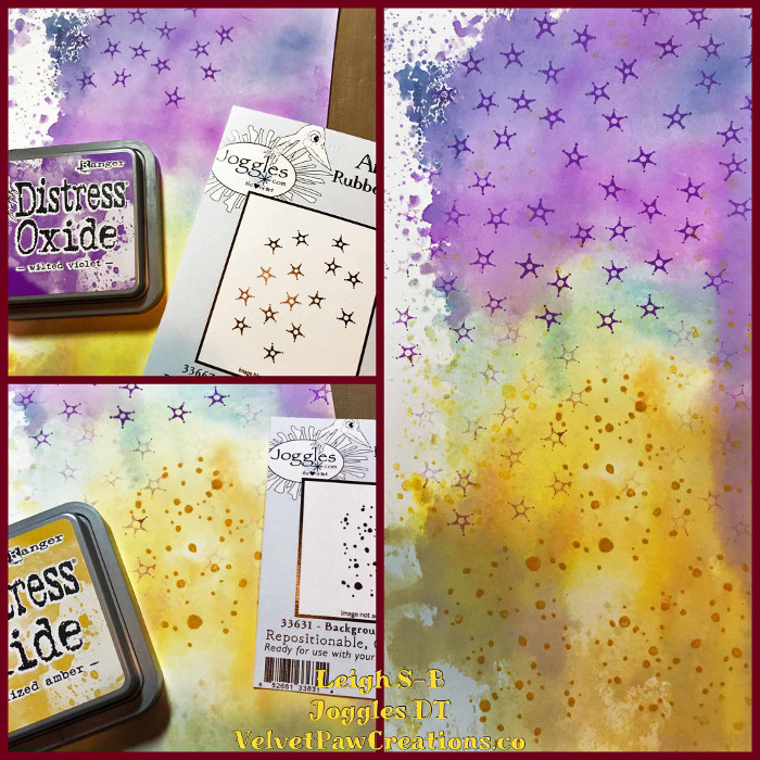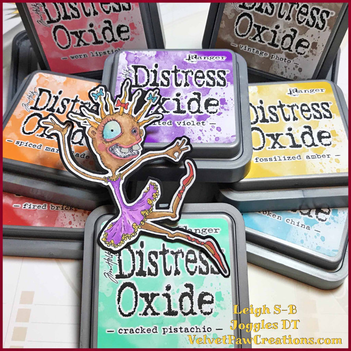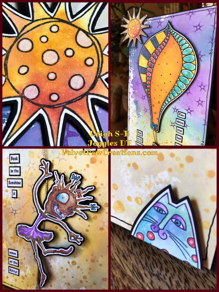 Leigh here and I’m back today with a quirky oversized card featuring Joggles’ rubber stamps combined with Distress Oxide painting. I’ve been stamping for over 20 years and some of my favorite things to do are unconventional cards that are oversized, very tall and very narrow and transforming stamp images into something else entirely like turning a leaf into a hot air balloon and a flower into a sun. I hope today’s tutorial inspires you to look at your stamps with fresh eyes and create your own magical and bizarre sized cards. FUN, right! Let’s get started.