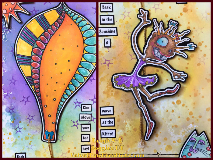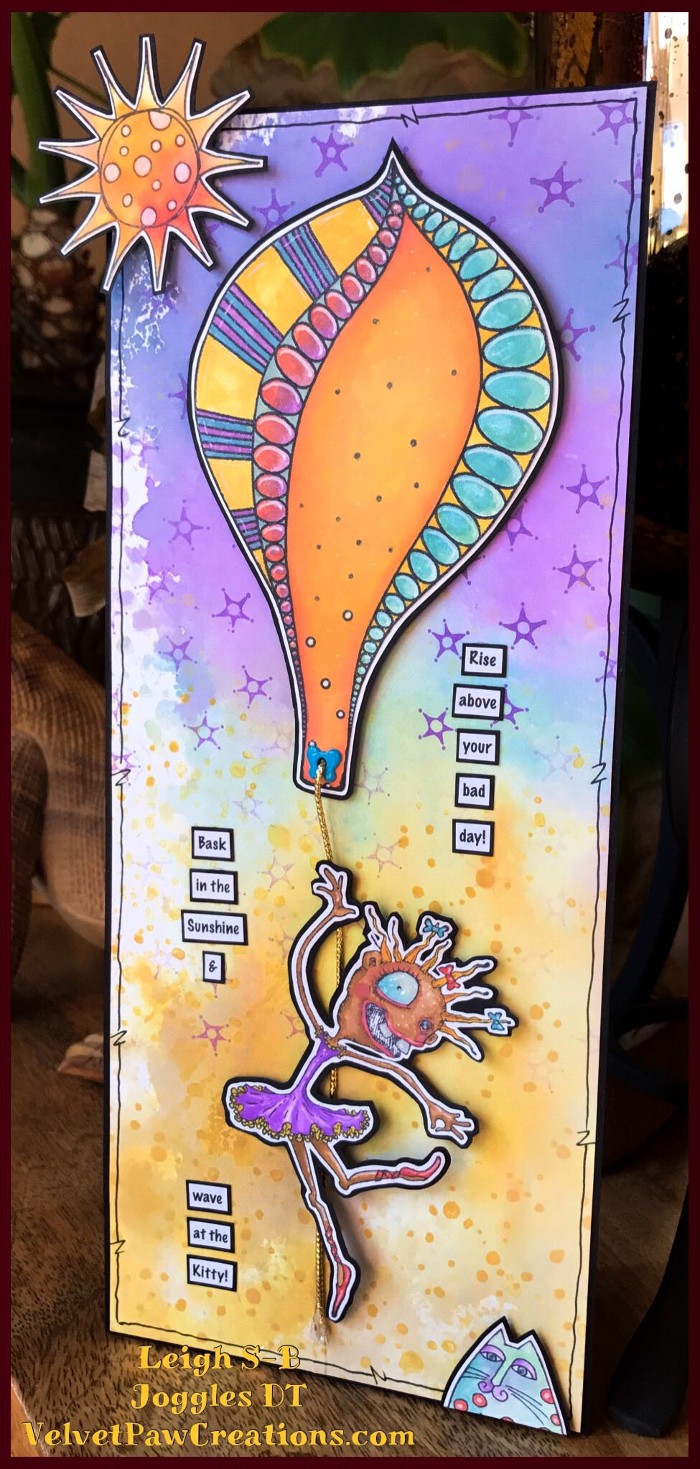 Doesn’t she look frazzled while waving at the kitty like a crazy person, but she soon felt much better floating around above all her troubles! It does feel good to just get away for awhile, even if it is just in our imaginations ;0) I hope my card made you smile and brightened your day!