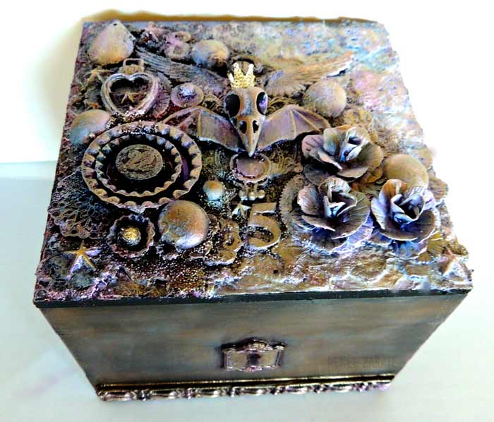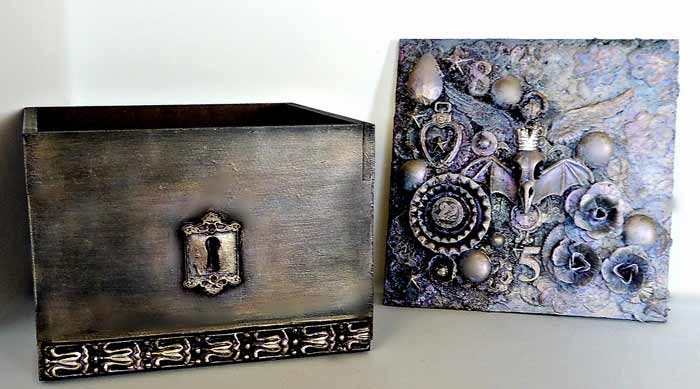 Shortly after the Masonite Boxes were introduced I asked her if she’d like to try her hand at creating one… and she graciously agreed. The sample you see was made from the 6″ x 6″ x 4″ tall box and while there aren’t any instructions, her piece provides plenty of inspiration! Click HERE to see all of our Masonite Boxes so you can get creating too. #nowgomakesomething