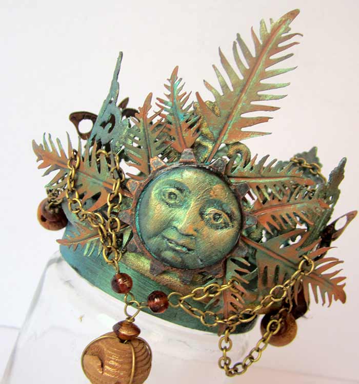Our final video that features our Joggles Metal Crown comes today courtesy of Keren Tamir who has gone in an entirely different direction with hers. I could try to explain, but since the video will show you far more than I could describe, I’ll put the video in front of you now and add some still photos that you can scroll and find under the supply list.