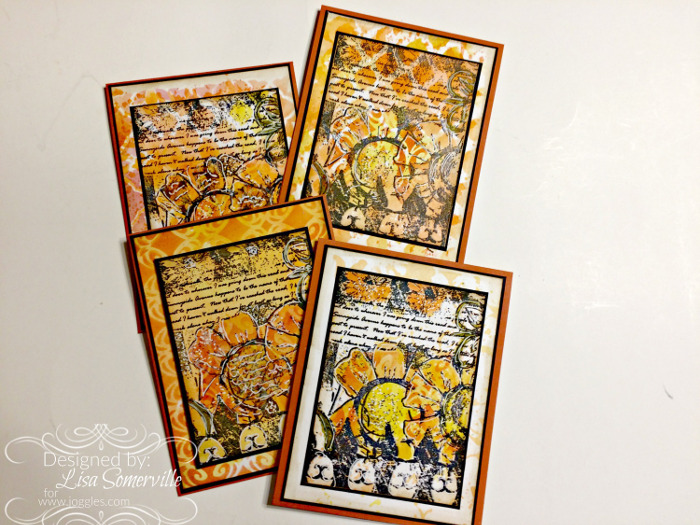 Hi there Joggles Fans! It's Lisa here today to share my Stenciled Fall Cards using Joggles Stamps and Stencils along with the GelPress Plate and Ranger Distress Inks. Supplies: Joggles/ Margaret Applin Designs …