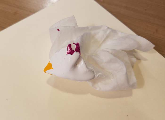 Dylusions Paint: White Linen, Pure Sunshine, and Funky Fuchsia on a baby wipe.