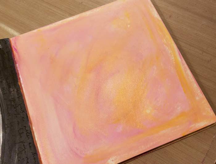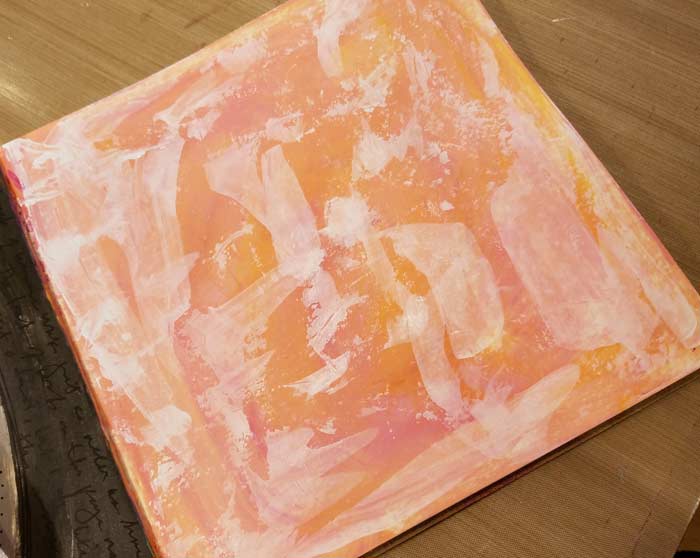 The background after a couple of applications of color. Also not what I had in mind. Gesso makes things better…