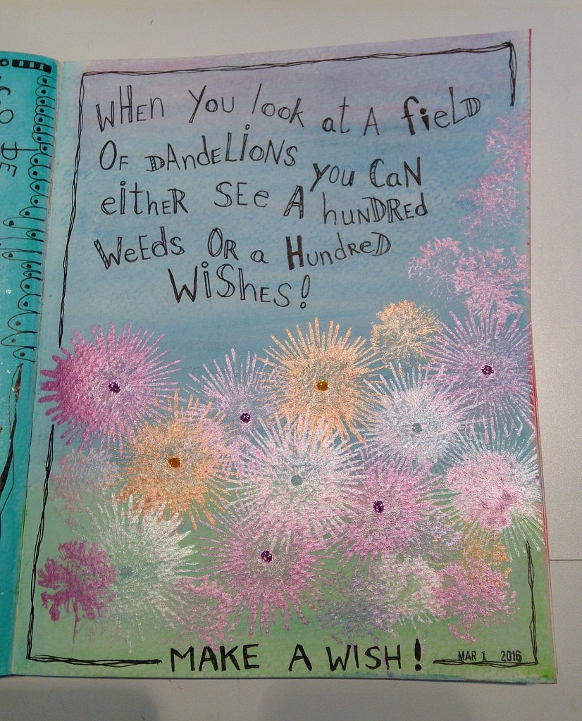 If you have not joined the Facebook 2016 Art Journal Adventure group I hope that you will. The warmth and supportive environment would make even the most dedicated lurker comfortable enough to chime in! Clicking here will take you to the group, which you need to ask to be a member of. Remember, that’s only a formality. Everyone is welcome!